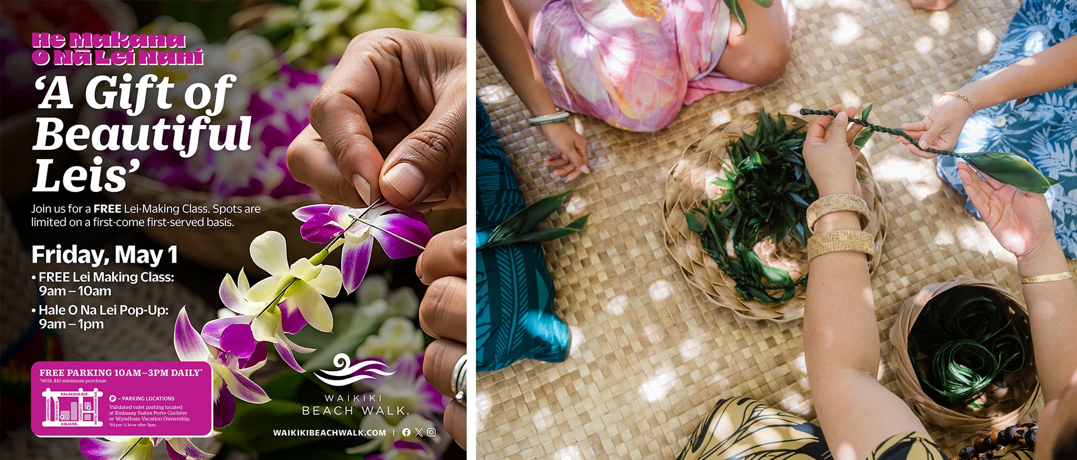 On Oʻahu, Waikīkī Beach Walk is inviting the community to a complimentary lei-making experience, He Makana O Nā Lei Nani, from 9-10am and OUTRIGGER Reef Waikīkī Beach Resort’s Hale O Nā Lei stand will host a pop-up from 9a-1p, offering handcrafted lei and cultural connection in the heart of Waikīkī. At the OUTRIGGER Waikiki Beachcomber Hotel, LexBreezy Hawai’i will be hosting a pop-up from 5-8p to celebrate their 10th anniversary of crafting modern aloha wear, weaving the Aloha spirit of the islands into every design with vibrant floral patterns that echo the beauty and meaning of lei.